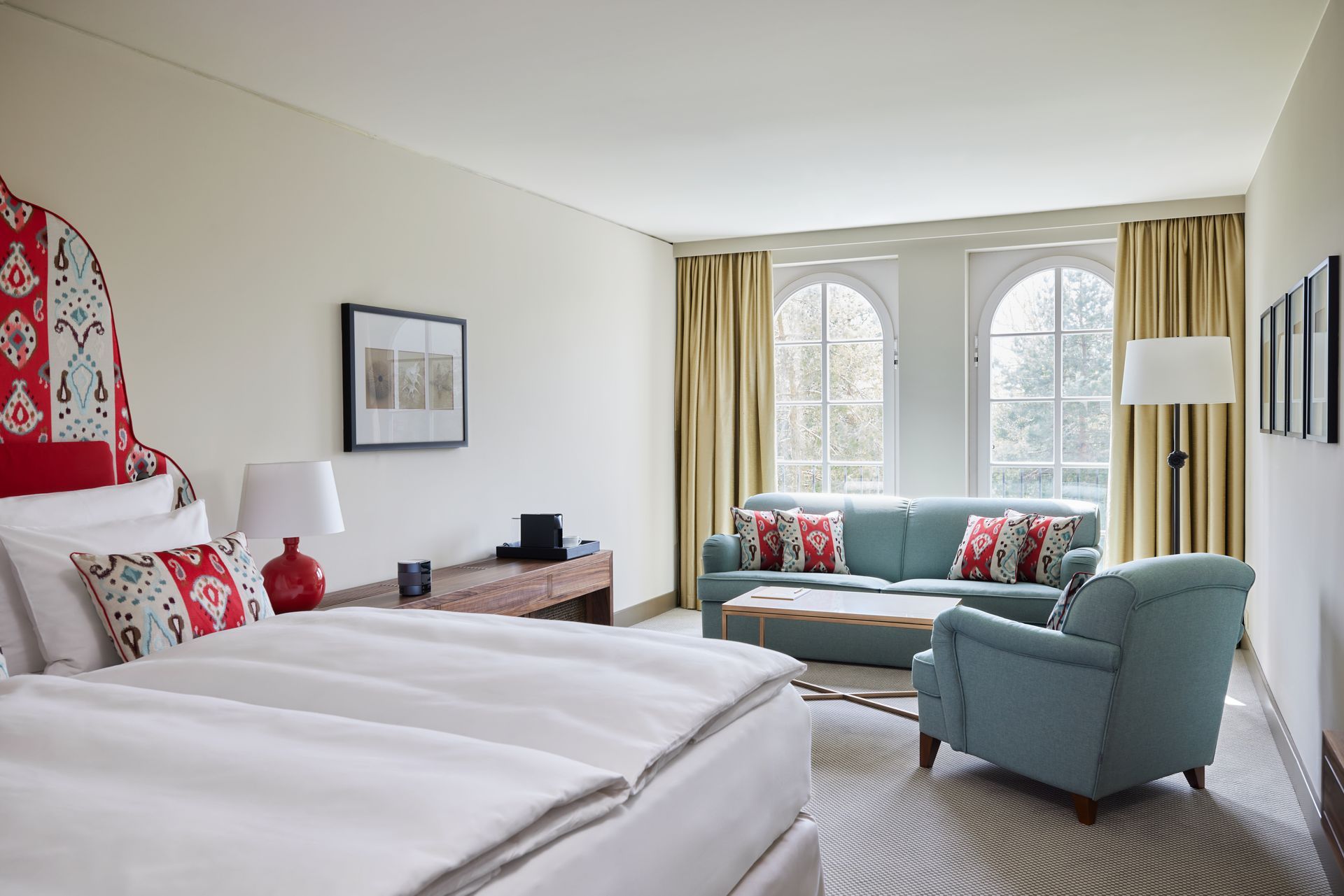 Lassen Sie den Alltag hinter sich in unseren 38 m² großen Doppelzimmern Parkseite – großzügig, komfortabel und eine wahre Wohlfühloase. Genießen Sie vom privaten Balkon den Blick auf Hotelgarten und Außenpool, entspannen Sie im luxuriösen Kingsize-Bett und bleiben Sie dank kostenfreiem WLAN verbunden. Minibar, Flatscreen-TV mit Chromecast und Entertainment Qube sorgen für Komfort und Unterhaltung – für erholsame und besondere Augenblicke.